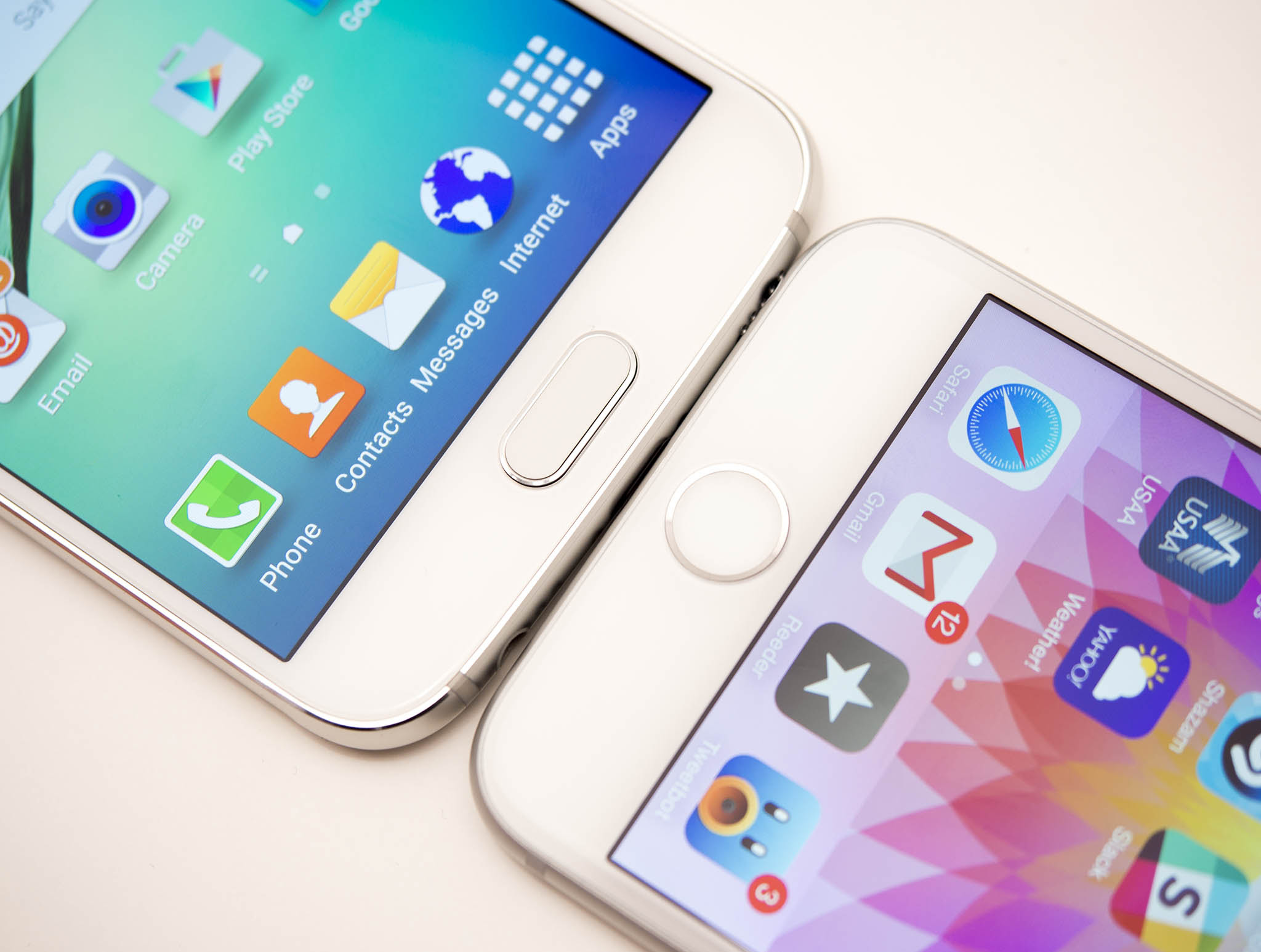 The Samsung Galaxy S6 and Apple iPhone 6 both have glass fronts, a physical home button below the screen and metal around the sides. They have LTE radios and are technically smartphones. And if you happen to look at them from below, they look a little similar from that one angle.